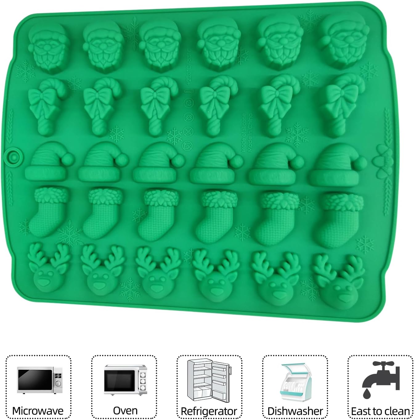 【Multipurpose Use】The Christmas chocolate molds are well-made. Suitable for various Christmas dessert decorations. Perfect for making chocolate,candy, ice cube, pudding, jelly,crayon,fudge,cupcake decoration etc. It can be a wonderful gift to teachers, family and friends.