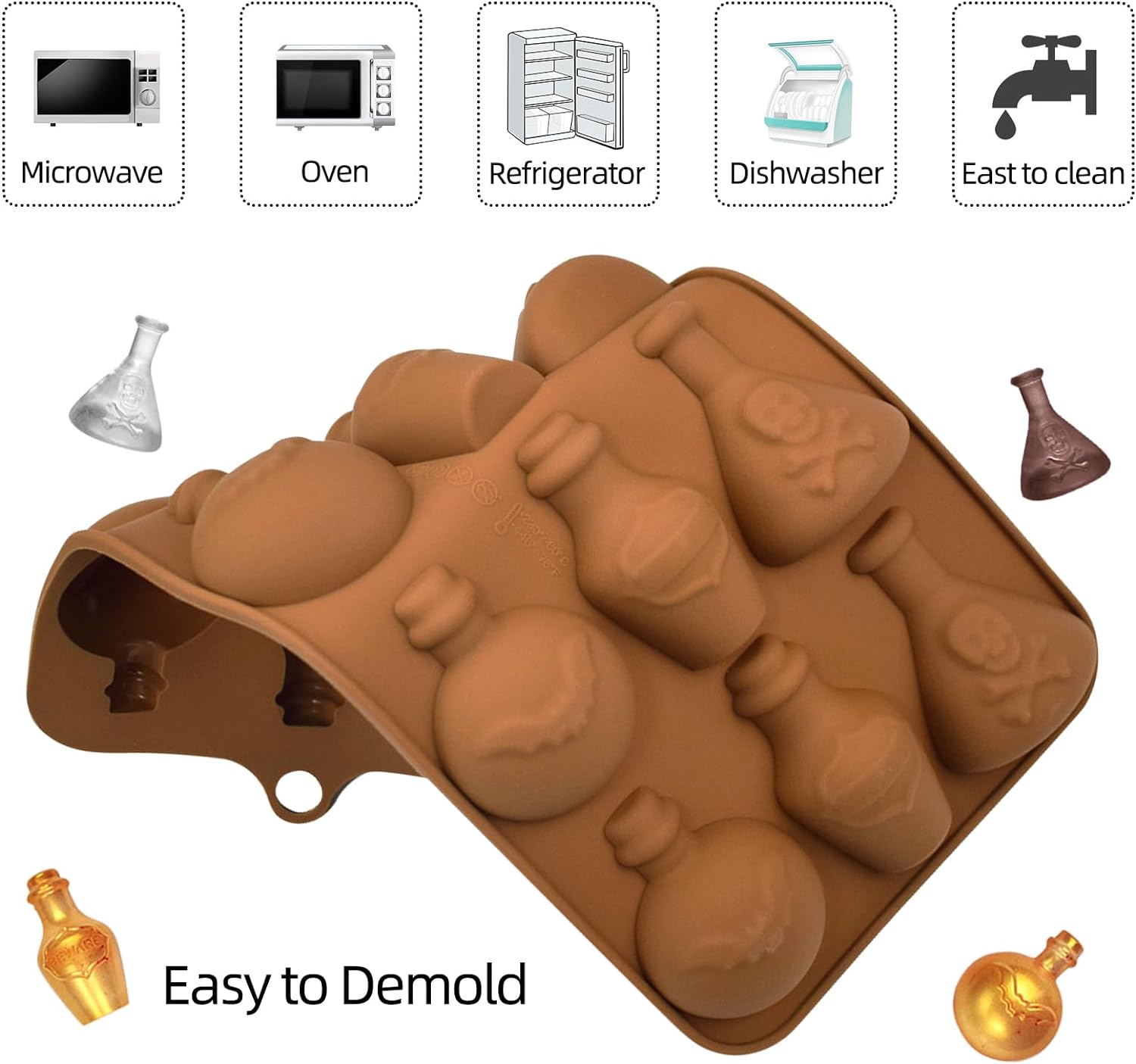 【Multipurpose Use】The halloween Potion Bottle chocolate molds are well-made. Suitable for various Halloween dessert decorations.Perfect for making chocolate,candy, ice cube, pudding, jelly, crayon, fudge, cupcake decoration etc. It is a wonderful gift to teachers, family and friends.