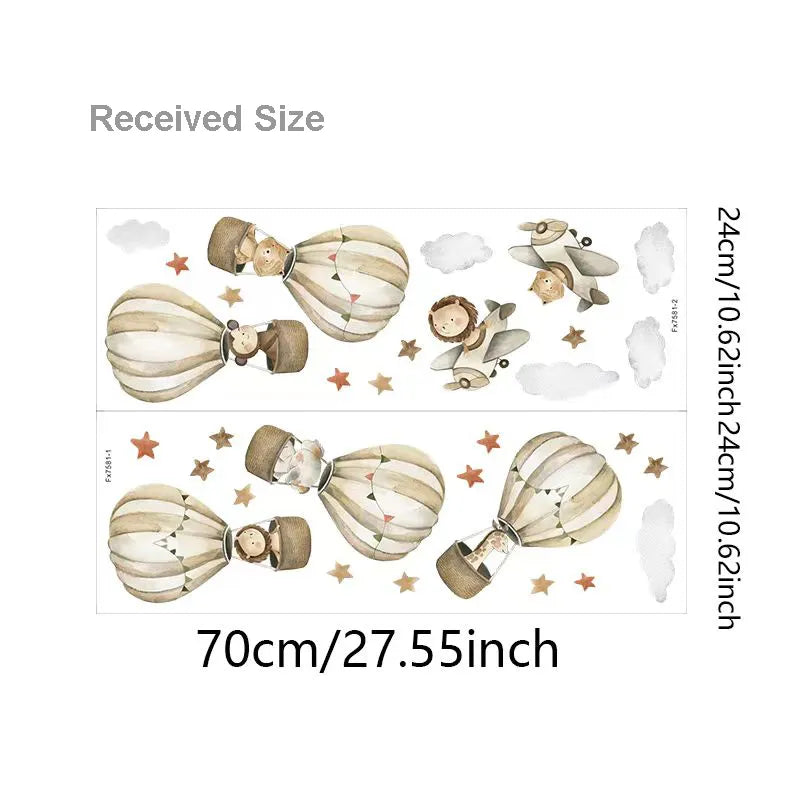 Kawaii Cartoon Animals Hot Air Balloon Wall Stickers for Children Boys Girls Baby Room